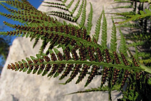 На фотографии изображен щитовник мужской, а на листьях расположены сорусы, предназначены для бесполого размножения.