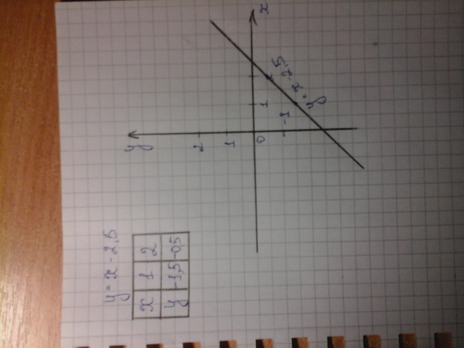 Перша точка на графіку з координатами (1;-1,5) друга точка (2;-0,5)