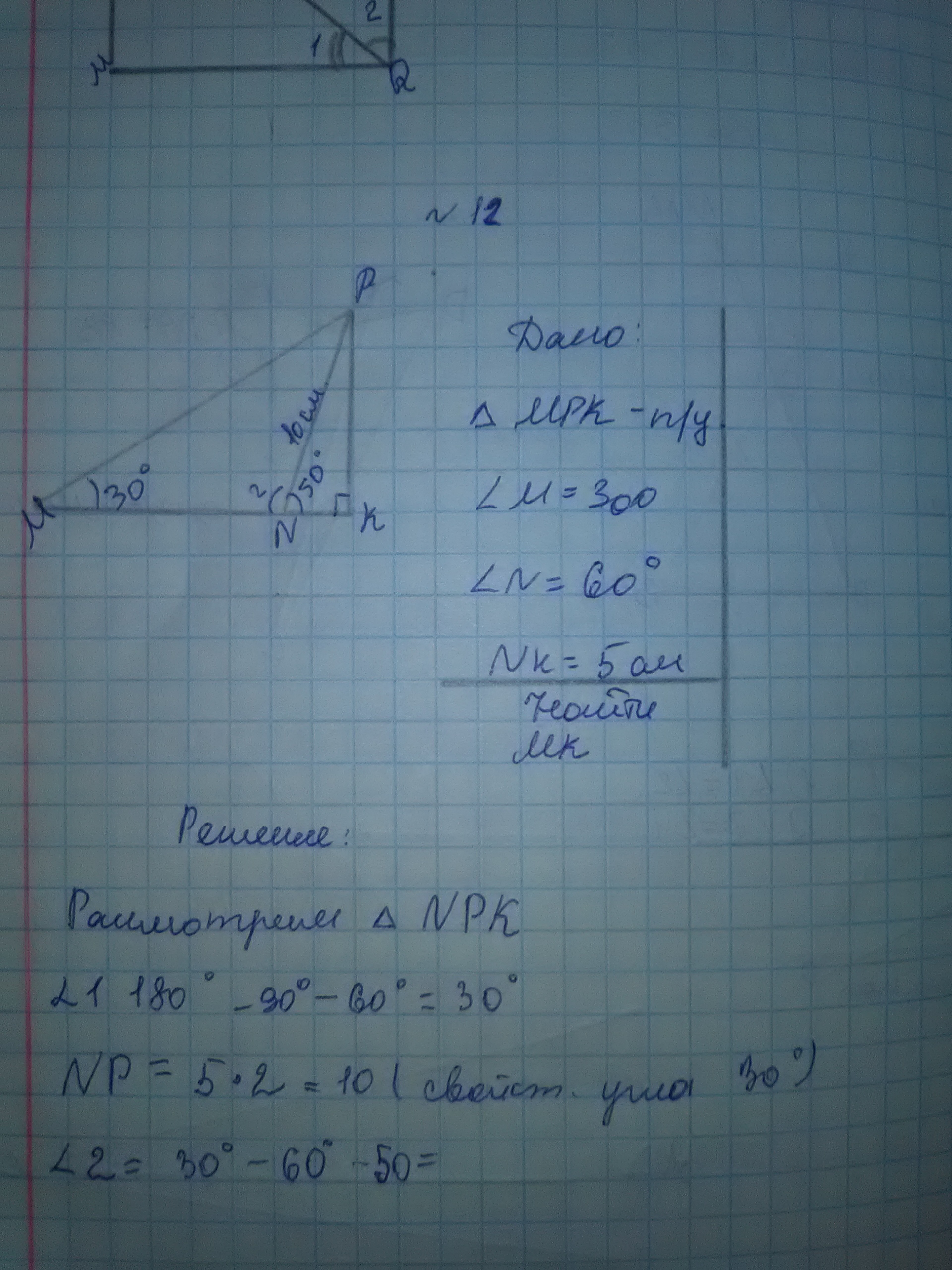 Треугольник MNP равнобедренный (уг.2 смежный с углом1 и равен 180-60=120°; уг.Р равен