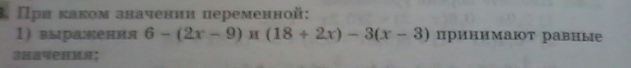 2.18(1) при каком значении переменной: 1)выражение 6-(2❌-9) и (18+2❌)-3(❌-3) принимают равные значения.