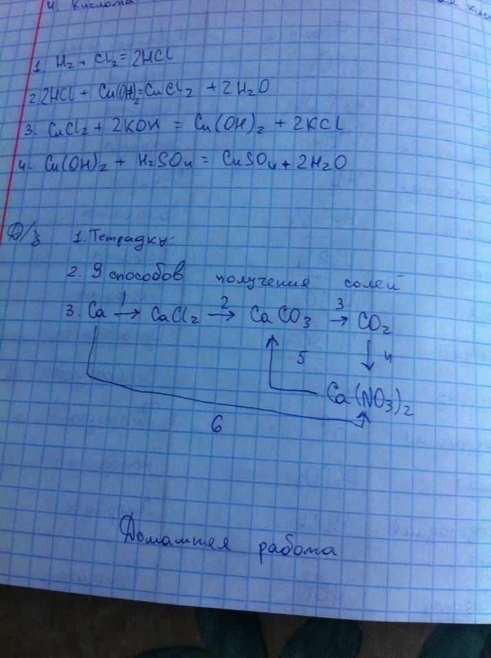 1) Ca + 2HCl = CaCl₂ + H₂↑