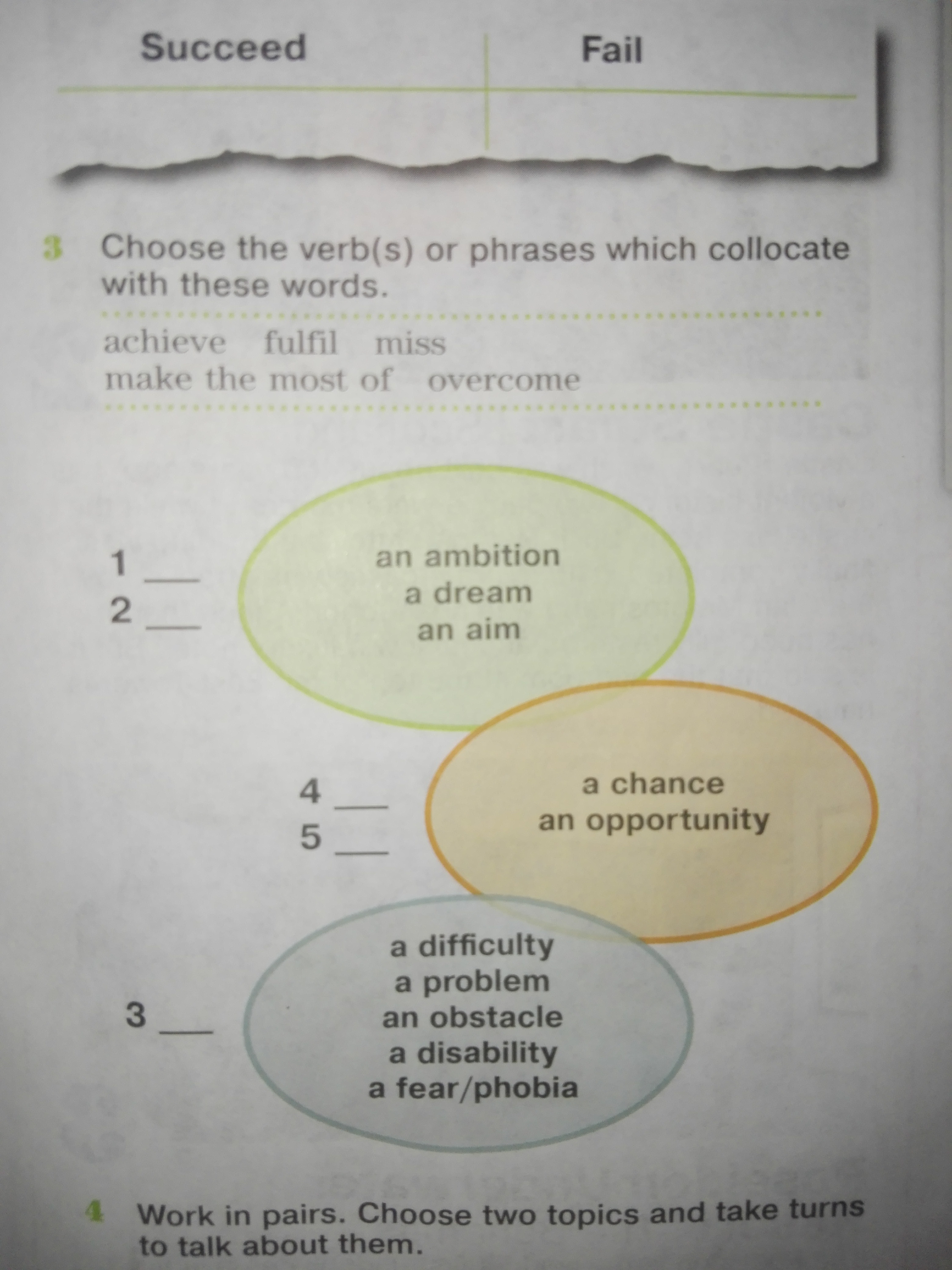 Нужно сопоставить слова и словосочетания из списка с выражениями, с которыми они употребляются.