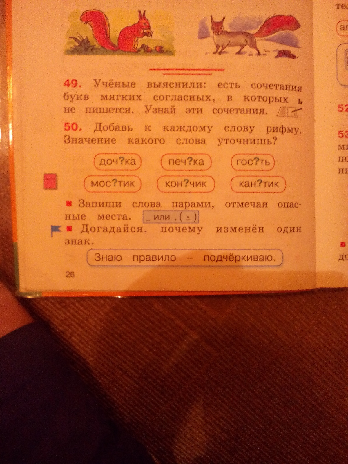 Дочка-точка; печка-речка; гость-кость; мостик-хвостик ;кончик- пончик; кантик- фантик! Опасные места, как раз те, где стоит вопросительный знак , из и подчеркнуть...