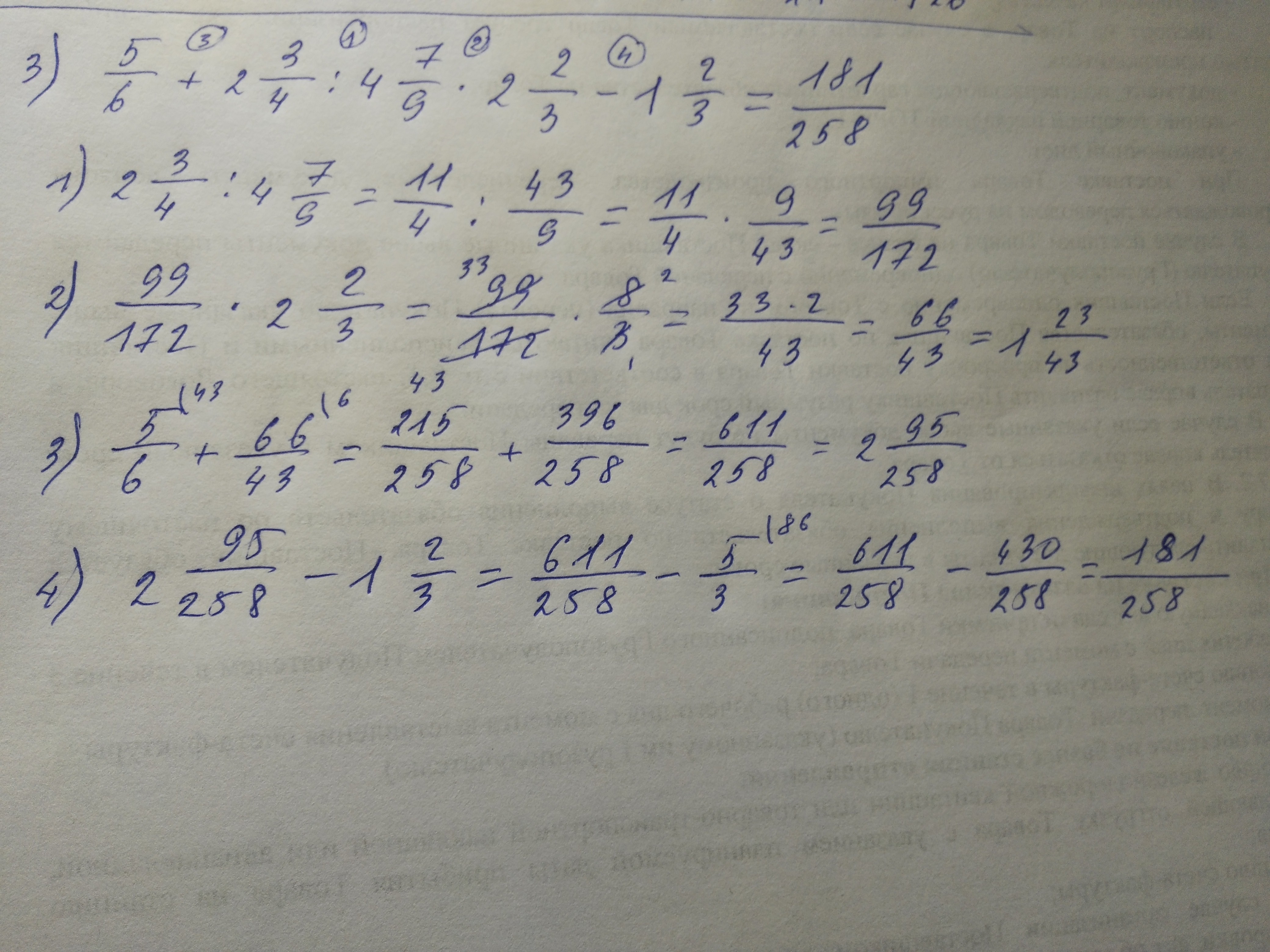 3)5/6+2 3/4:4 7/9*2 2/3-1 2/3