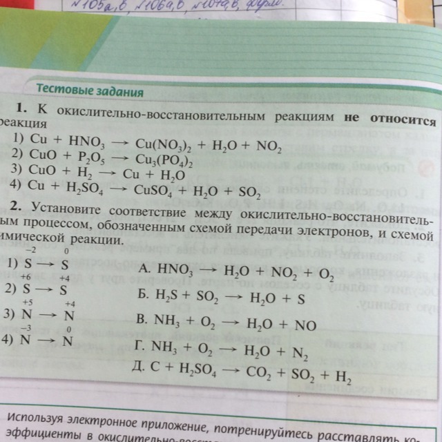 К ОВР не относится реакция под номером 2, потому что медь не изменяет степень окисления у неё как была степень окисления равная -2, так она и сохранилась. Во всех остальных случаях степень окисления меняется хотя бы у одного элемента: 1) Меняется у меди с 0 на +2, 3) меняется у меди с +2 на 0 и у водорода с 0 на +1, 4)меняется у меди с 0 на +2 и у серы с +6 на +4