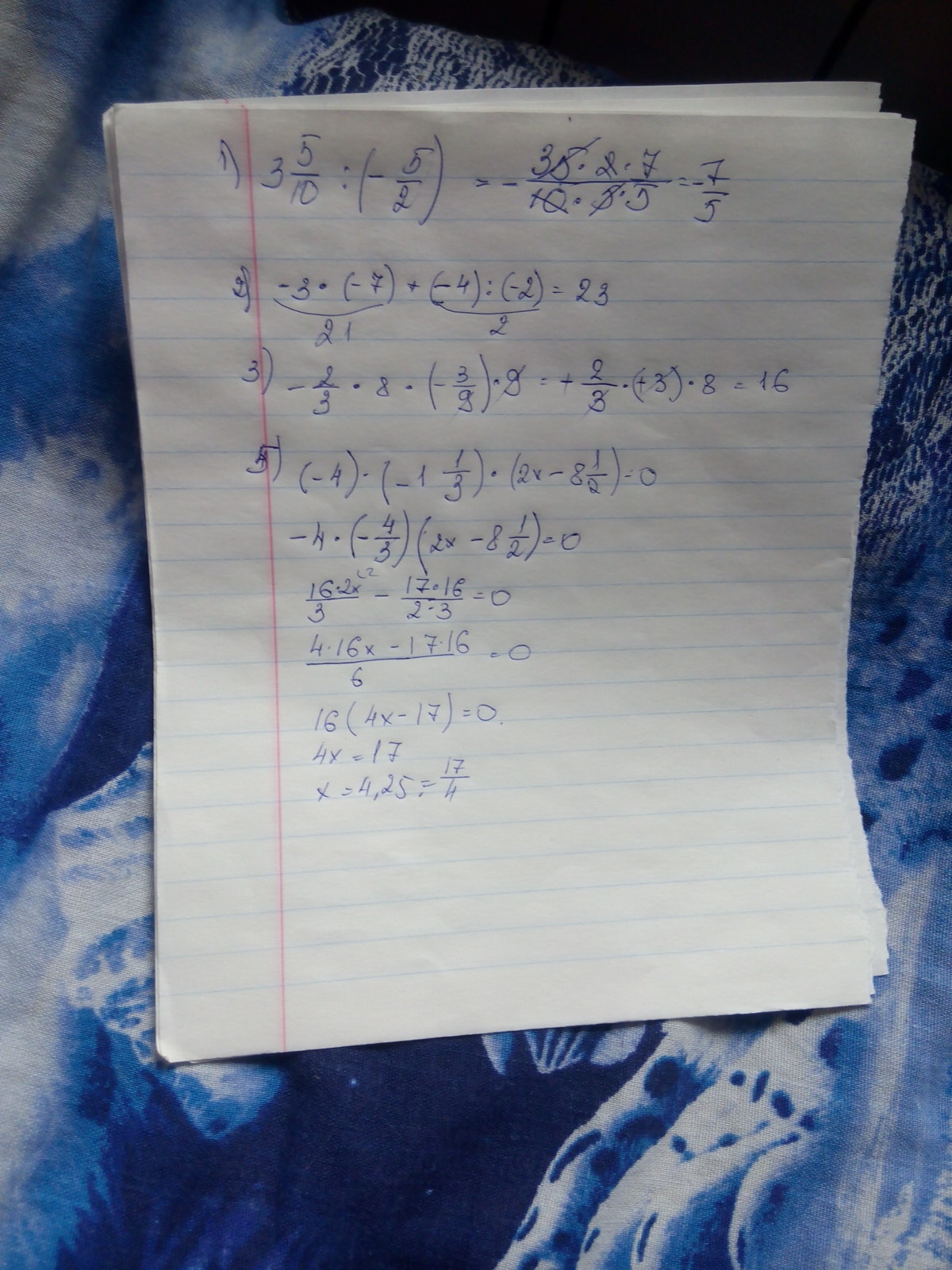 5. решите уравнение : (-4)*(-1 целая 1/3) * (2х - 8 целых 1/2)=0