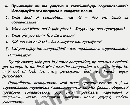 принимали ли вы участие в каких нибудь соревнованиях. помогите составить несколько предложений по каждому пункту плана 4 предложения.