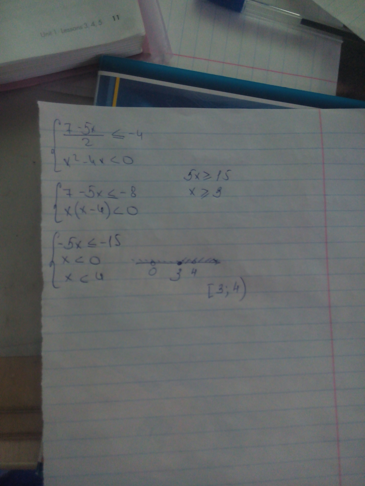 Объединяем оба неравенства получаем, что х больше или равен 3, но строго меньше 4