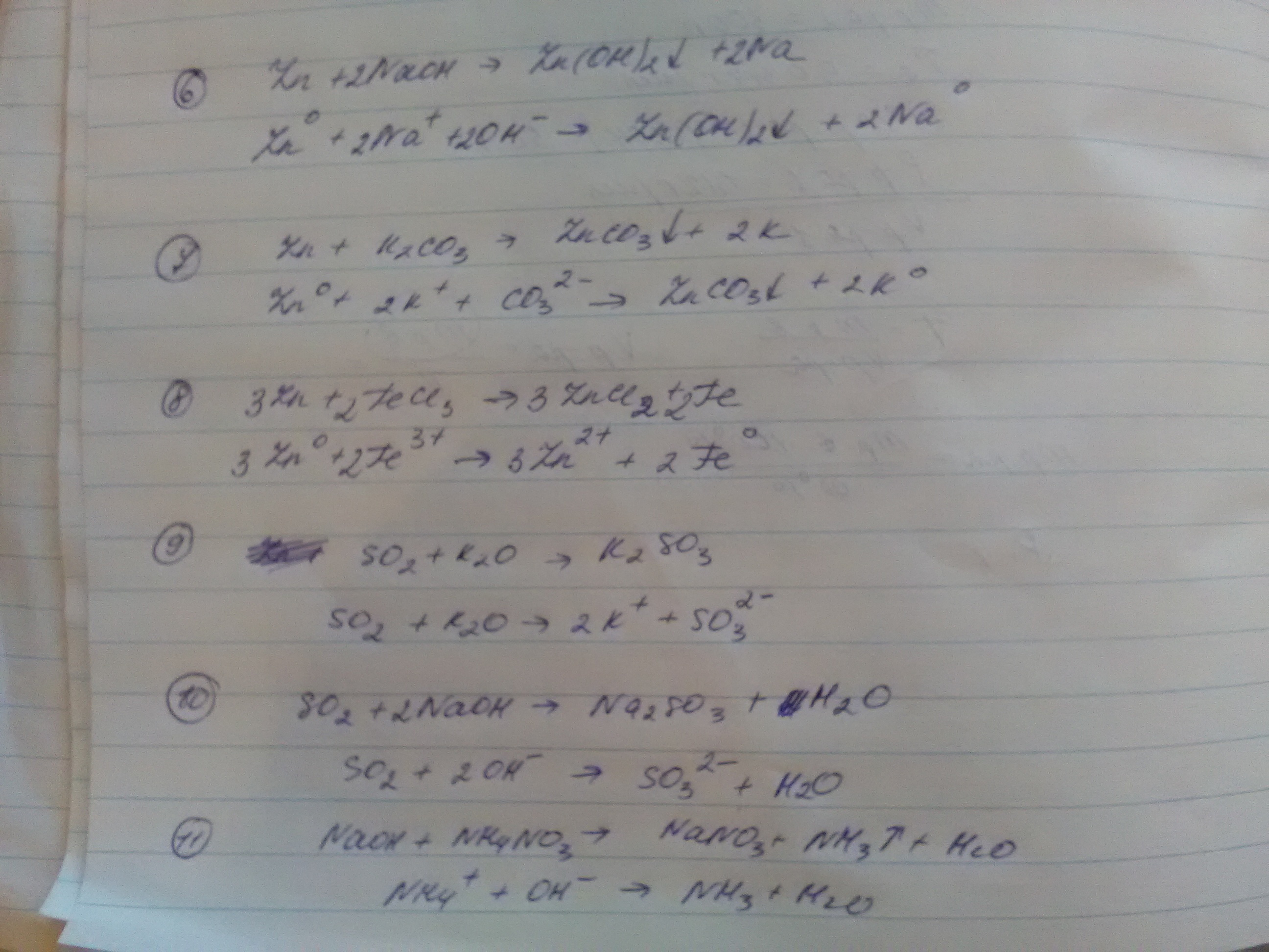 Составить все возможные уравнения в молекулярном и ионном виде : hCl,Mg(No3)2,Zn,So2,K2O,NaOh,K2Co3,Nh4No3,FeCl3,Cu(Oh)2!!!!!!!!!! Даю 20б