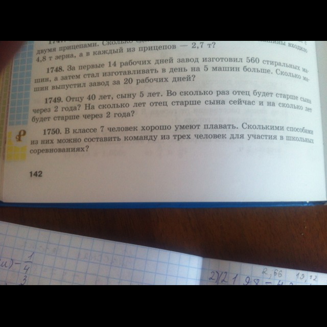 В классе 7 человек умеют плавать. Сколькими способами можно распределить детей по три человека?
