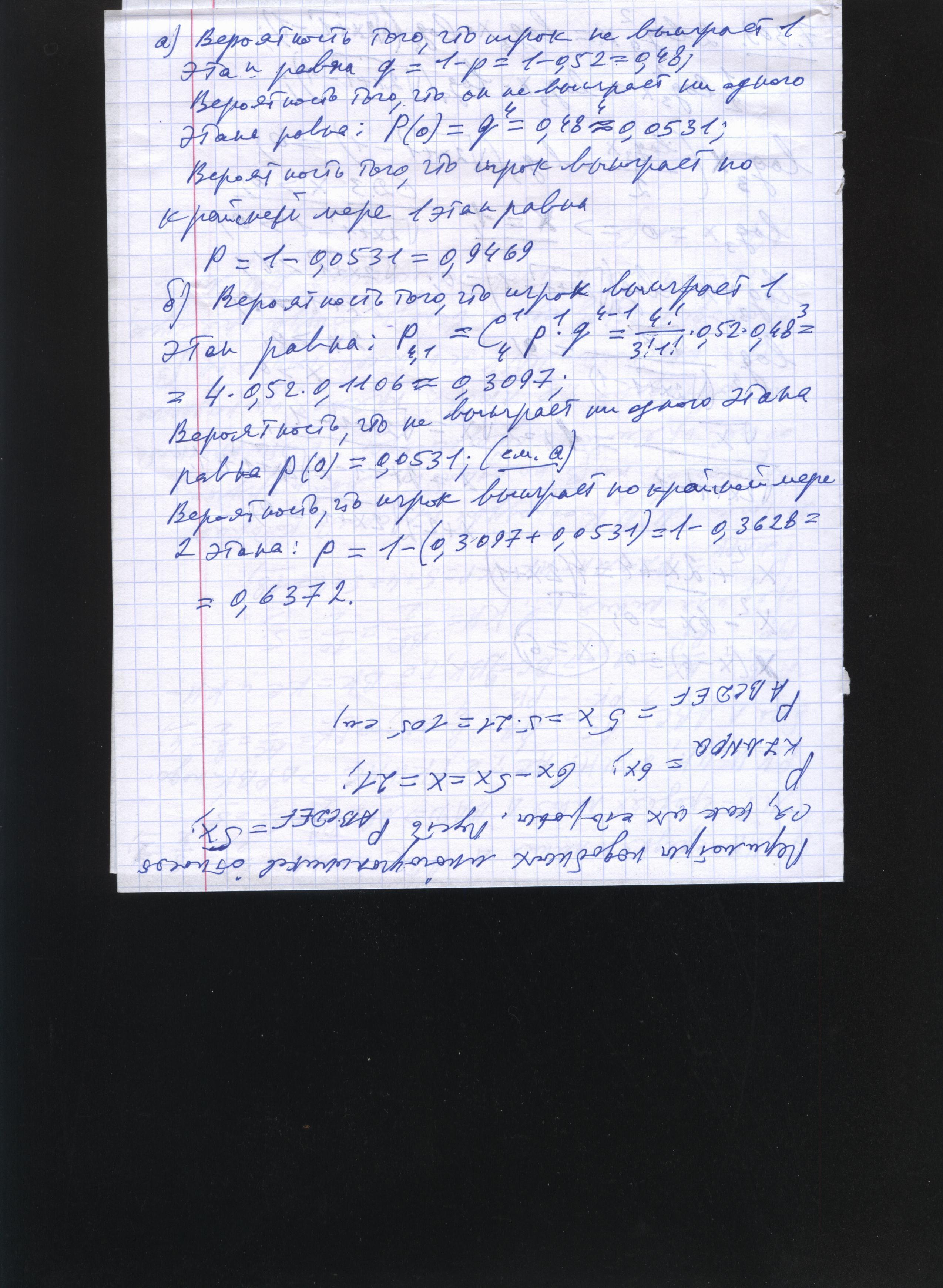 Игра состоит из четырех этапов( каждый этап - независимое событие). Вероятность того, что игрок выиграет один этап равна 0.52.