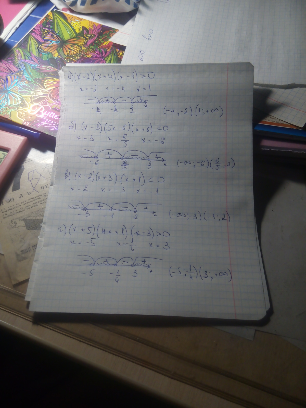 решаем и на каждом промежутке берем число и пробиваем так сказать, чтобы определить знак. по знаку в неравенстве смотрим, что нам нужно