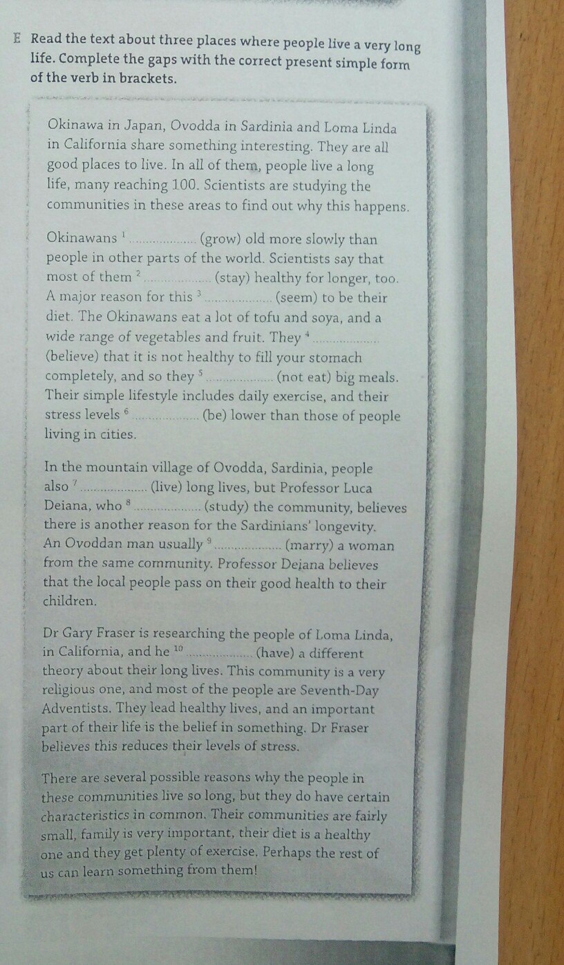 Okinawans grow..., most of them stay..., seems to be, ...stay healthy, they believe that..., they do not eat ..., are lower than..., people also live, ...studies the community,...usually marries ...., he has different....