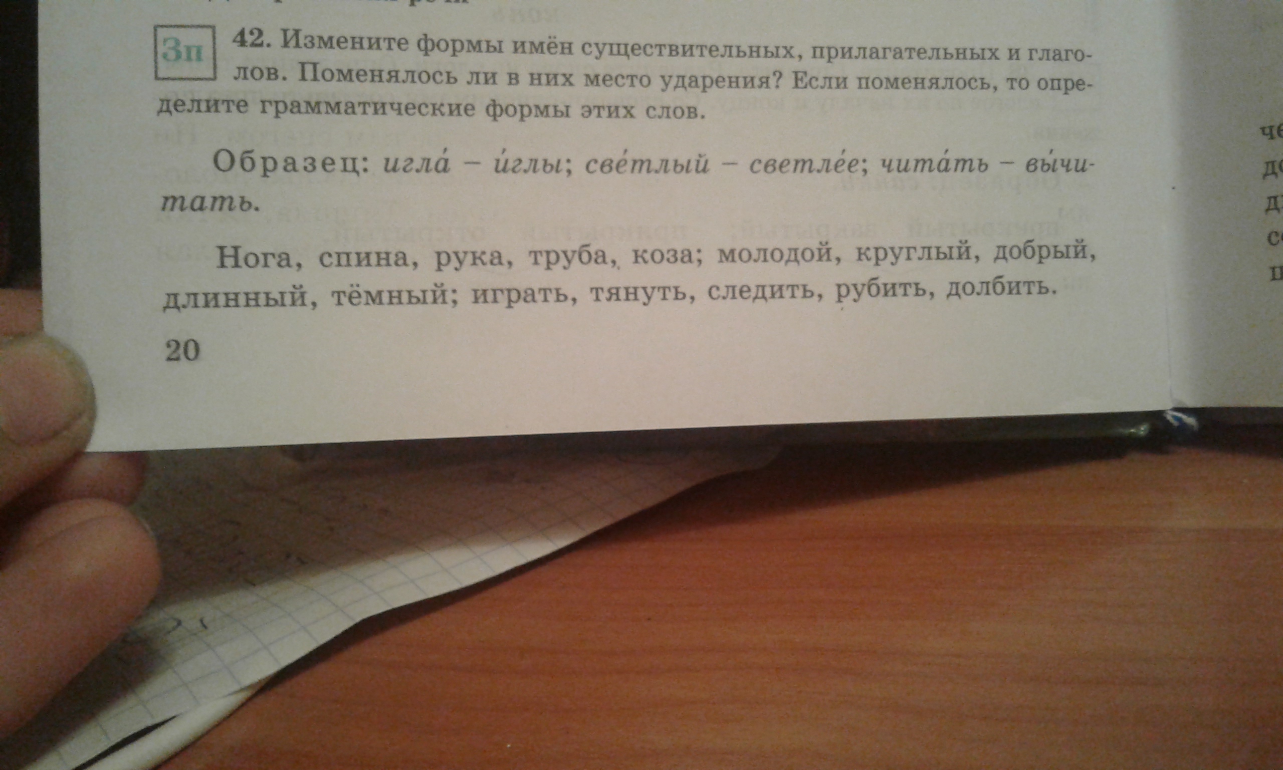Нога-ноги,спина-спины,рука-руки,труба-трубы,коза-козы,молодой-моложе,круглый-круглее,добрый-добрее,длинный-длиннее,темный-темнее,играть-выиграть,тянуть-вытянуть,следить-выследить,рубить-вырубить,долбить-выдолбить