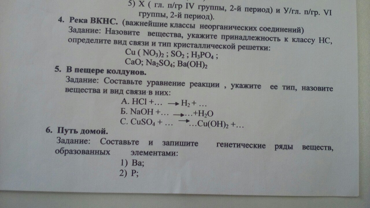 задание: Составте уравнение реакции,укажите ее тип,назовите вещества и вид связи в них: