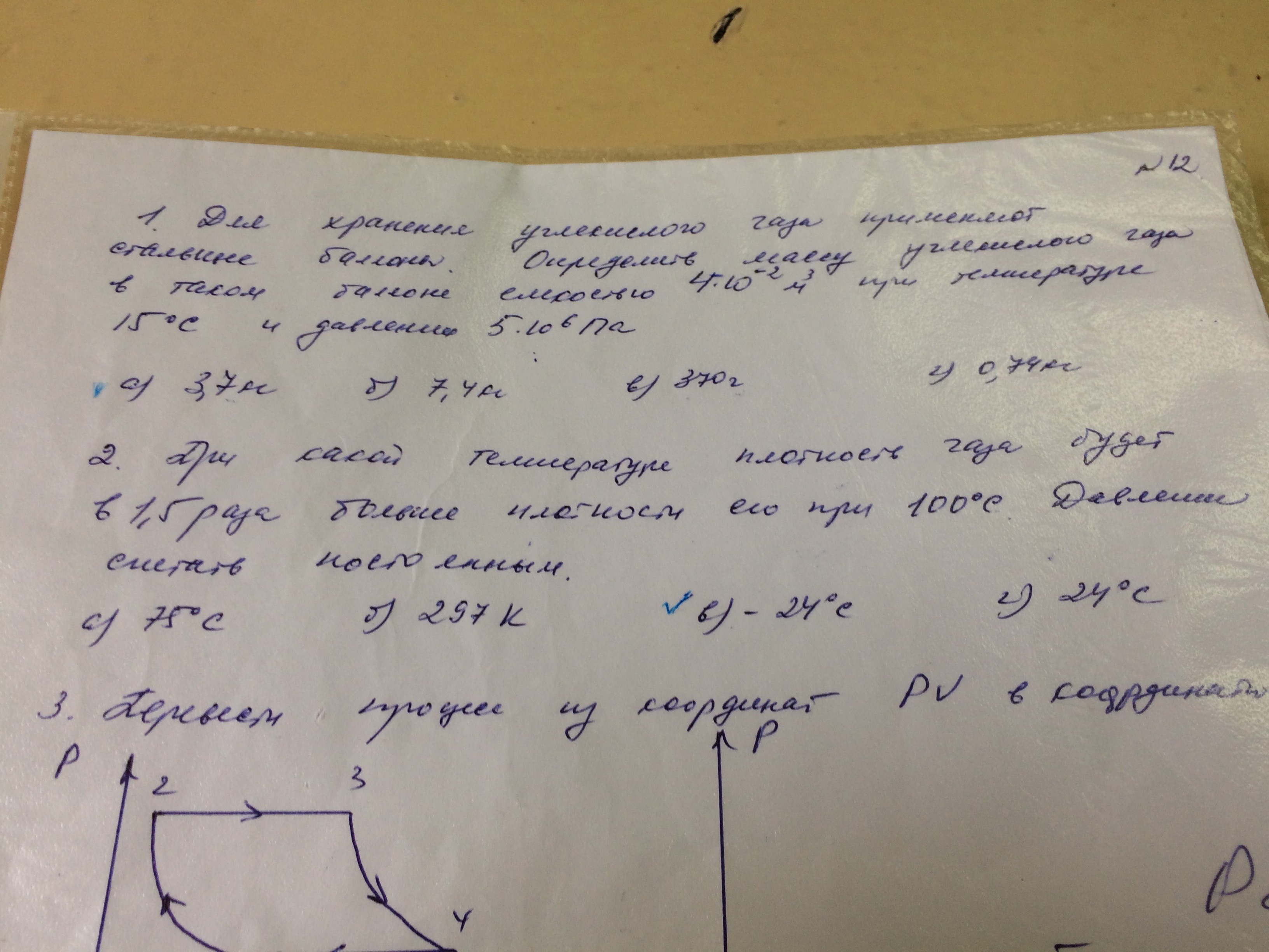 1) m=p*V*M/(R*T)=5*10^6*4*10^-2*44*10^-3/(8.31*288)=3.7 кг