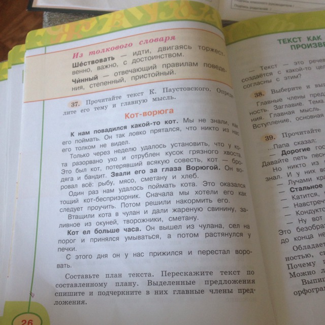 Номер 37, Ззадание снизу. Выделенные предложения спишите и подчеркните в них главные члены предложения.