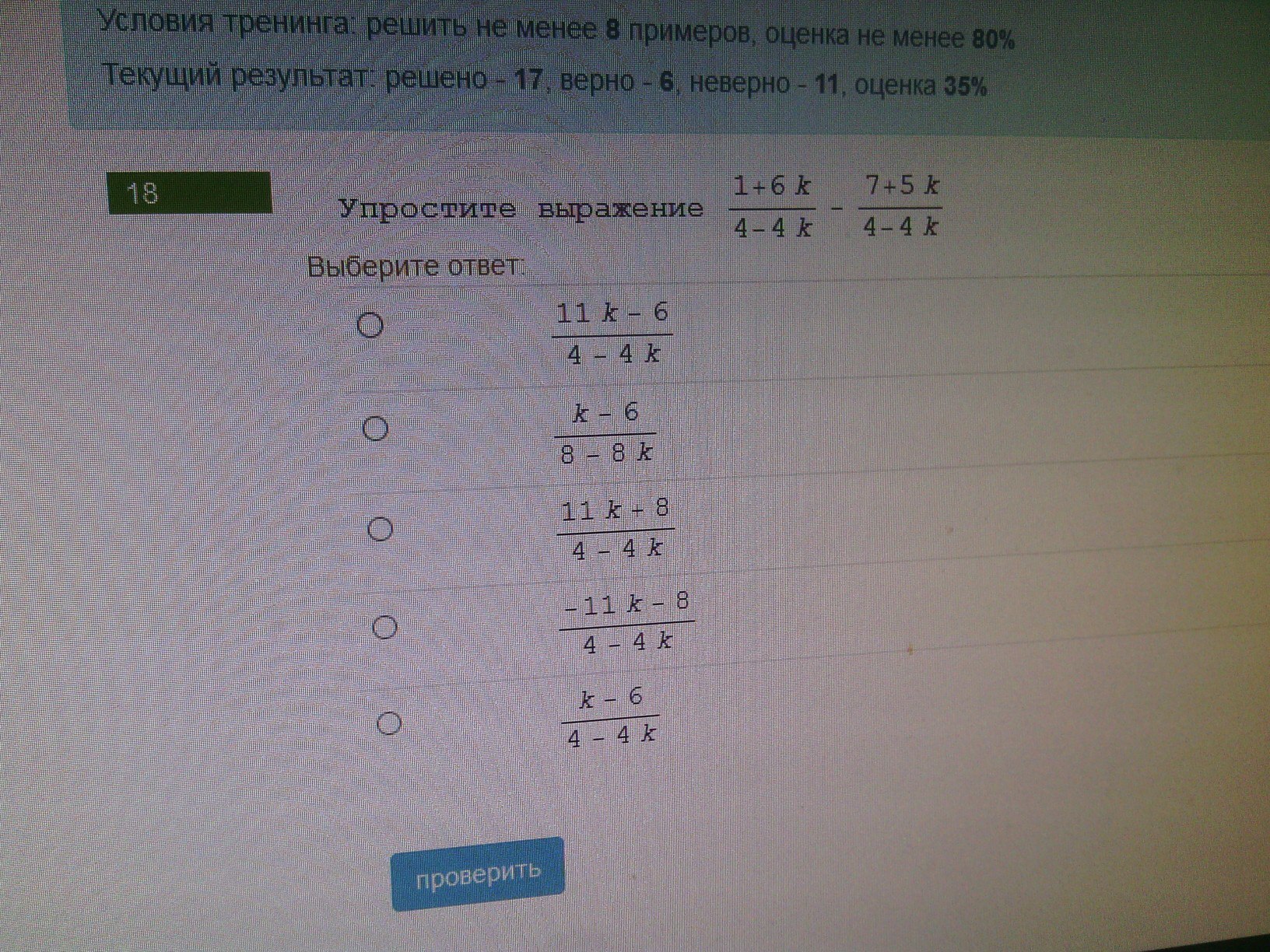 Правильный четвертый ответ (1-7= -6; 6-5=1 или просто k)