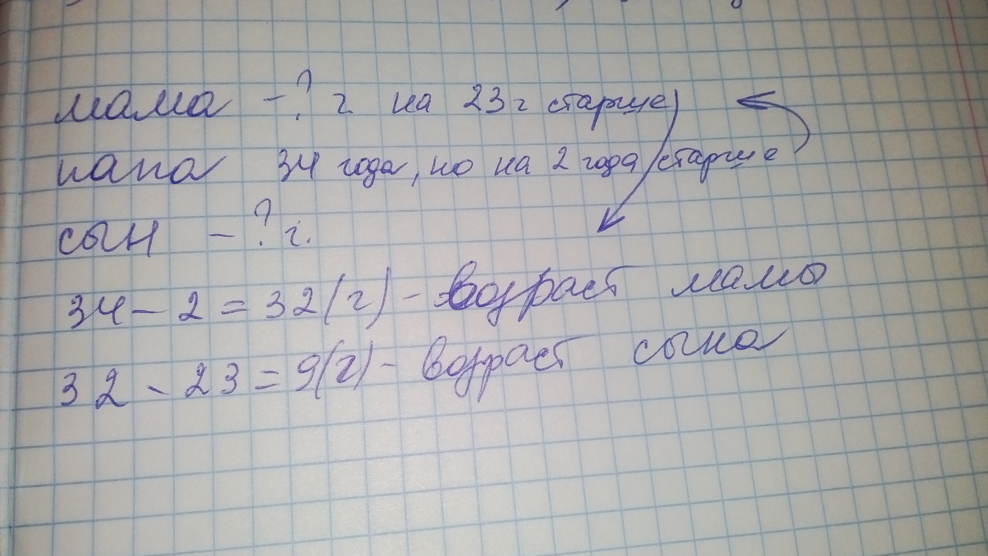 2)Мама на 23 года старше сына, а папа на 2 года старше мамы.Сколько лет сыну,если папе 34 года?
