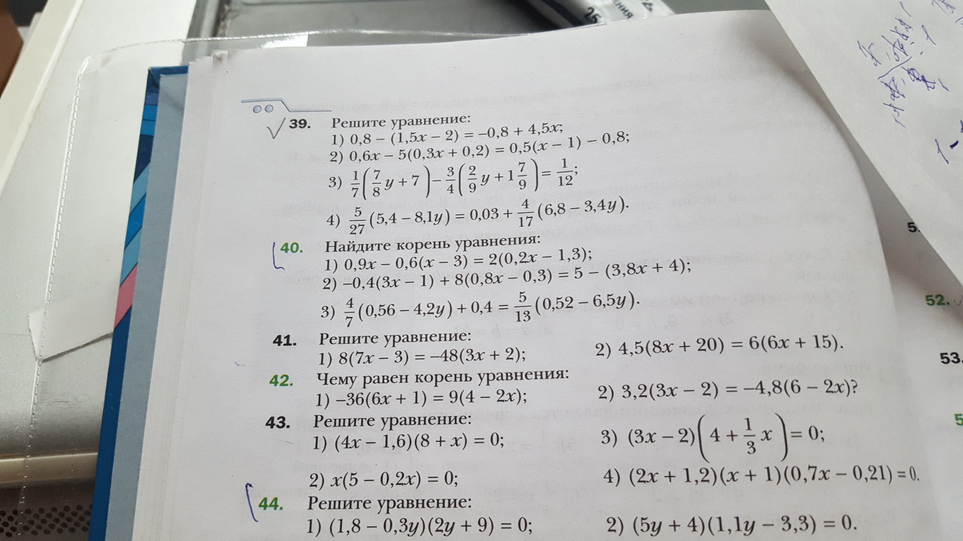 3) 4/7(0,56-4,2y)+0,4=5/13(0,52-6,5y),