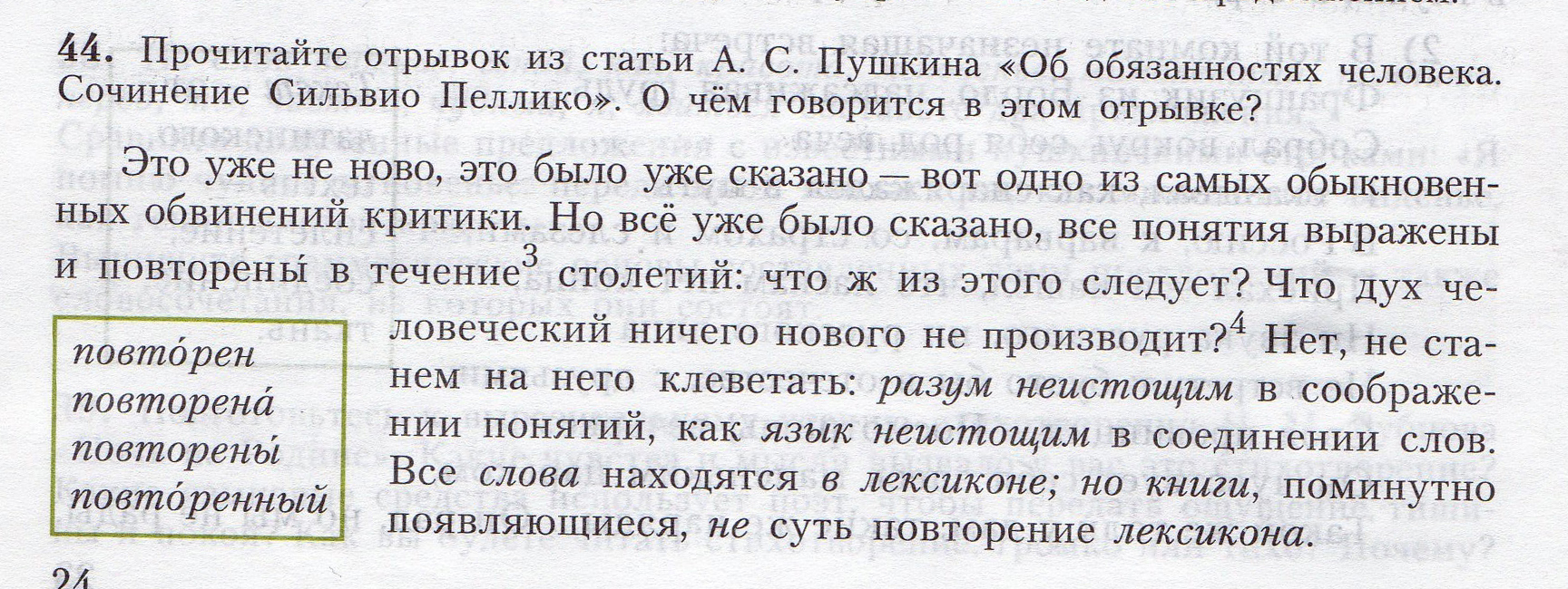 Глаголы: было, следует, производит, станем, клеветать, находятся. Причастия: сказано, повторены, неистощим, появляющиеся.