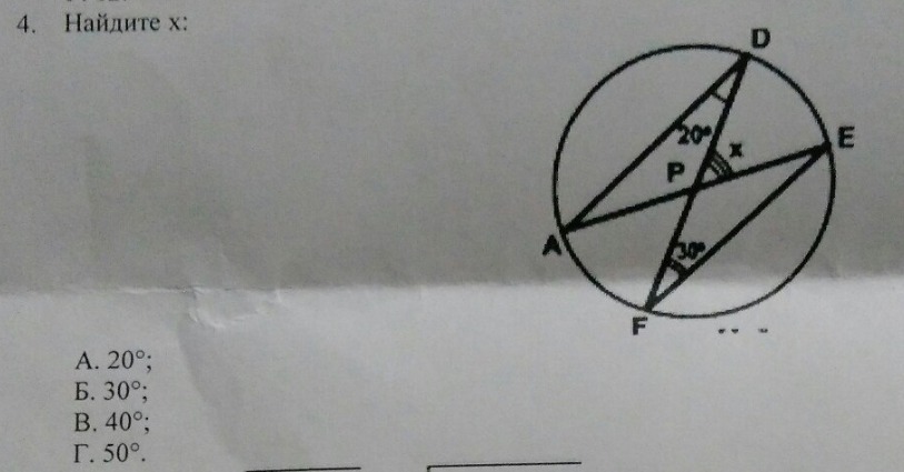 вписаный угол 20°, а центральный опирается на ту же дугу равен 40°. Он вертикальный с углом х. х=40°