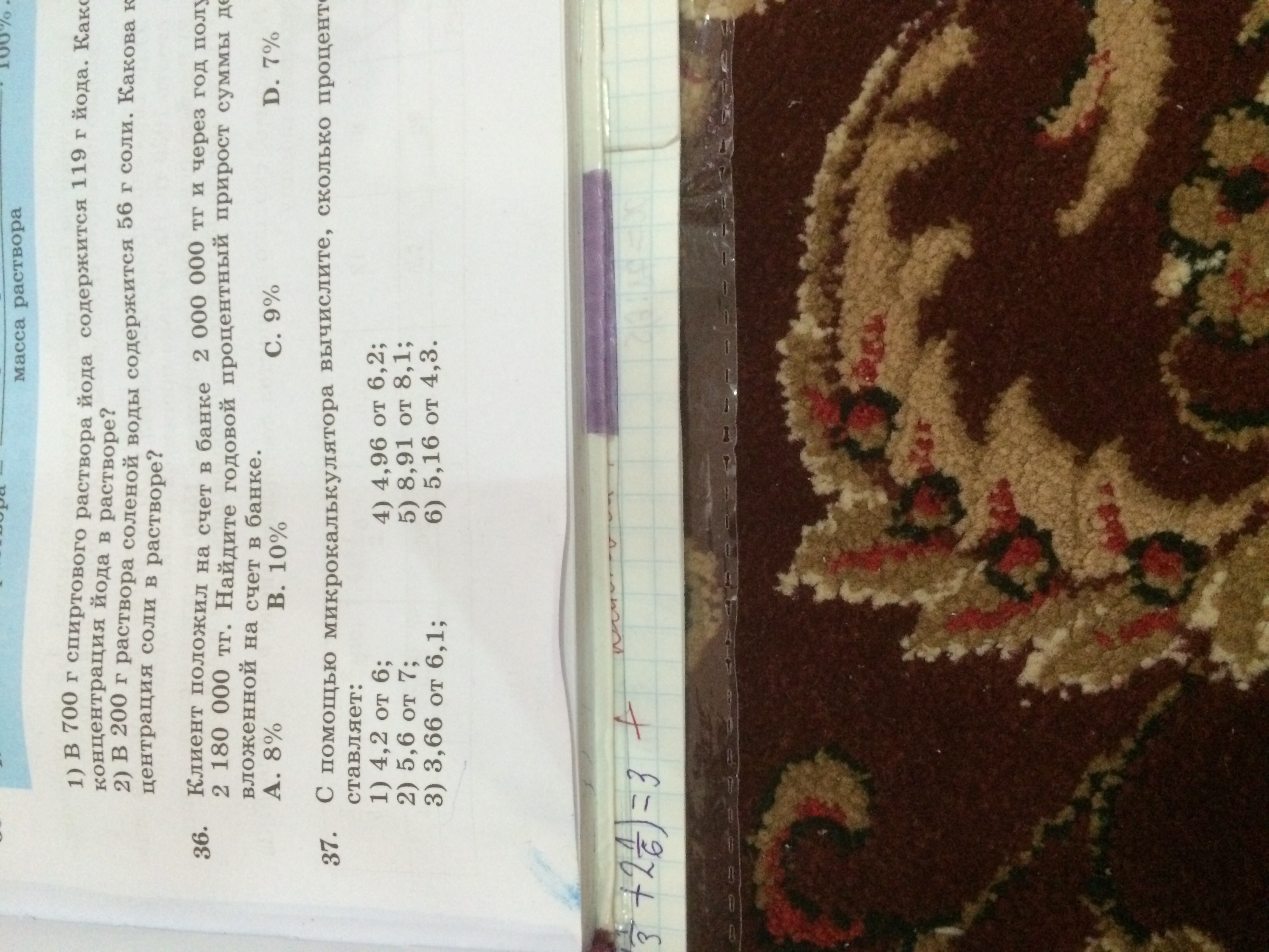 3) 6,1 : 3,66 = 1,6 % 6) 4,3 : 5,16 = 0,883 %