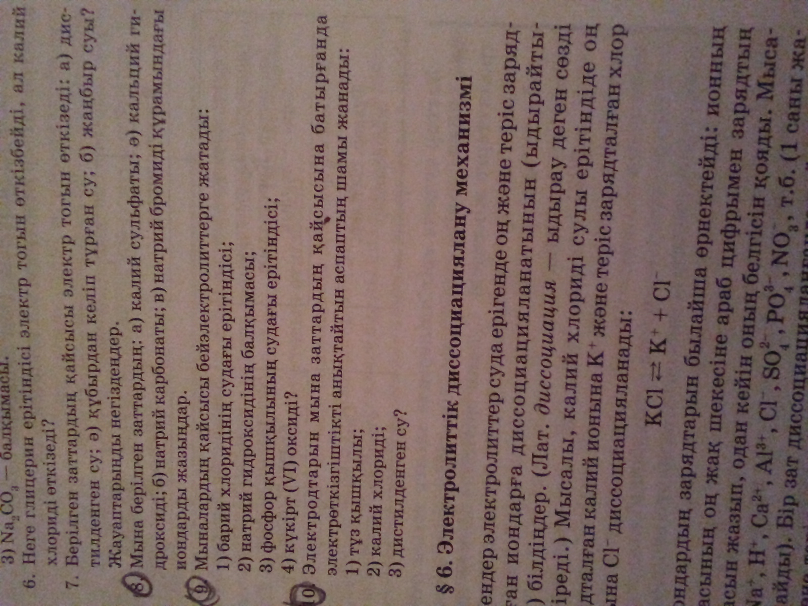 8)K2SO4⇄2K⁺ +SO4²⁻