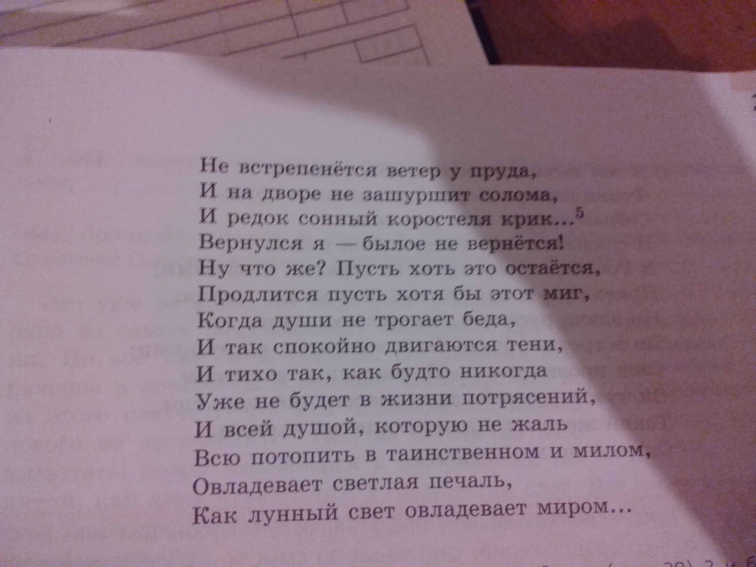 Коммуникативные : "вернулся я - былое не вернется!", "спокойные кругом ложатся тени".