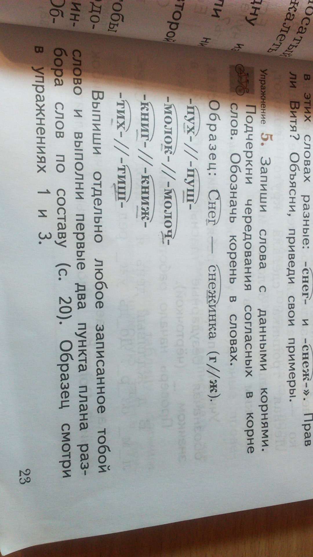 Запиши слова с данными корнями. Подчеркни чередование согласных в корне слов. Обозначь корень в словах.