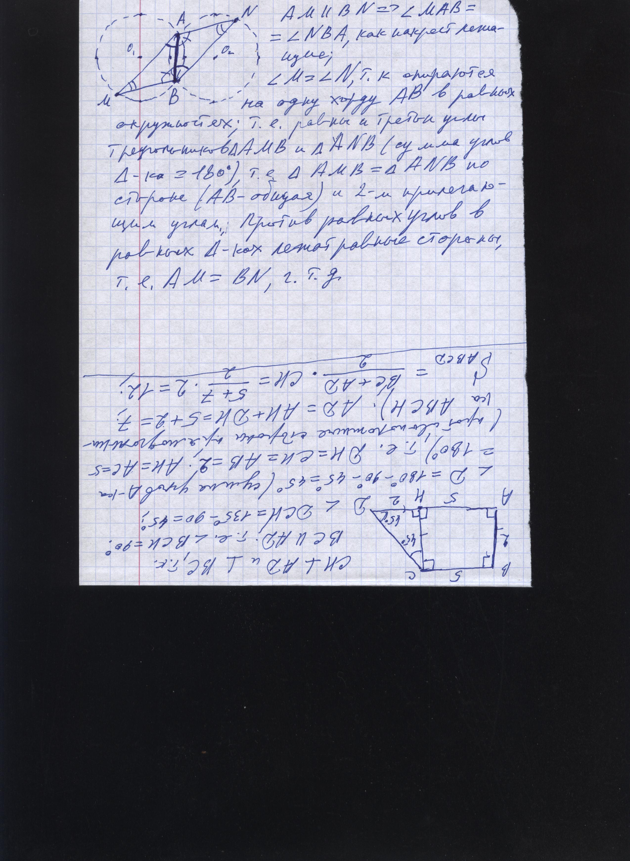 две равные окружности пересекаются в точках A и B . через точки А проведена хорда АМ одной окружности , а череш точку B- хорда BN другой окружности , причем AM и Bb паралелны . Доказать что эти хорды равны