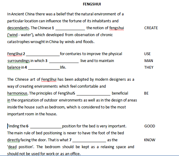 Прочитайте приведённый ниже текст. Преобразуйте слова, напечатанные заглавными буквами в конце строк, обозначенных номерами 1 – 7 так, чтобы они грамматически соответствовали содержанию текста. Заполните пропуски полученными словами. Перевод не нужен.