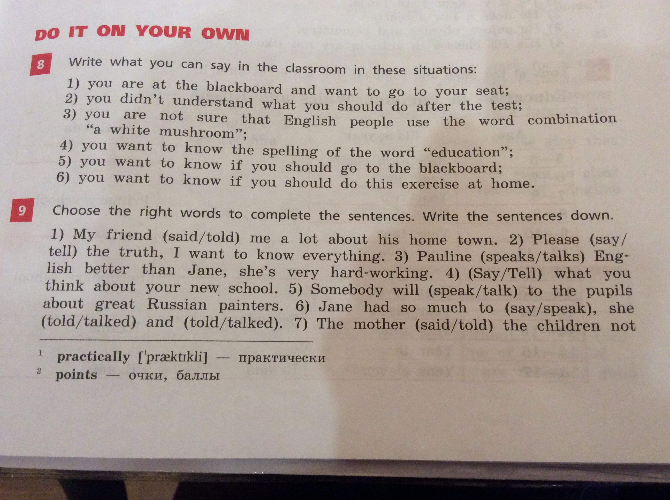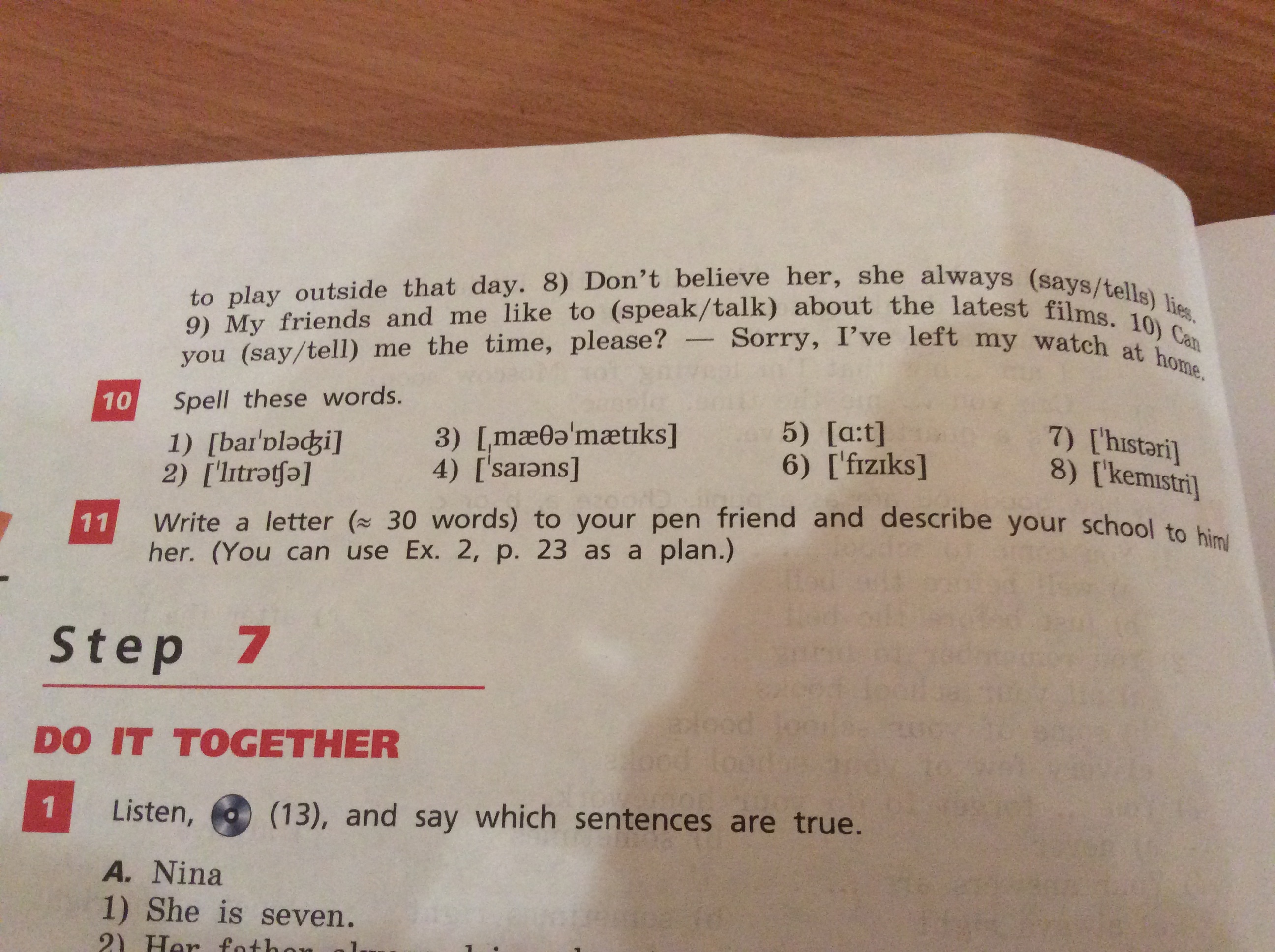 1. Told. 2. Tell. 3. Speaks. 4. Say. 5. Тут и то и то можно, разница не большая, я лично использовала бы talk, но speak более формально, а тут как бы серьезный смысл в предложение., поэтому выбирайте какое хотите 6. Say, talked, talked. 7. Told. 8. Tell. 9. Talk (и кстати my friends and I, а не my friend and me). 10. Tell.
