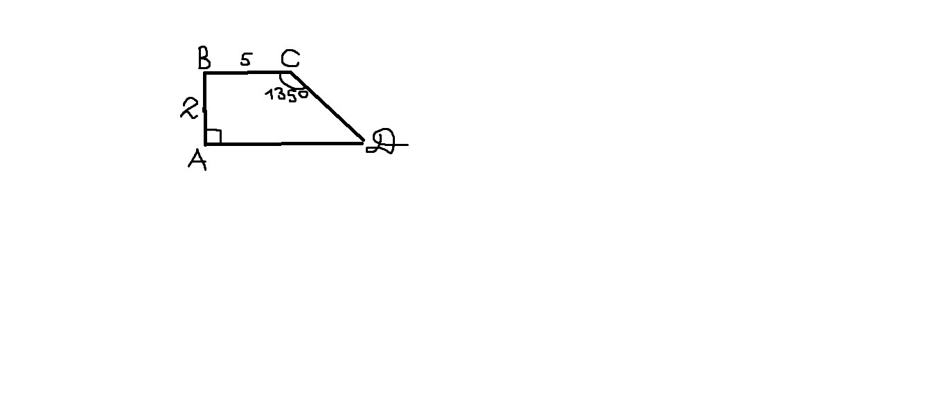Дана трапеция ABCD; BC=5см,AB=2см:Угол BCD= 135 градусов. Найдите площадь этой трапеции.