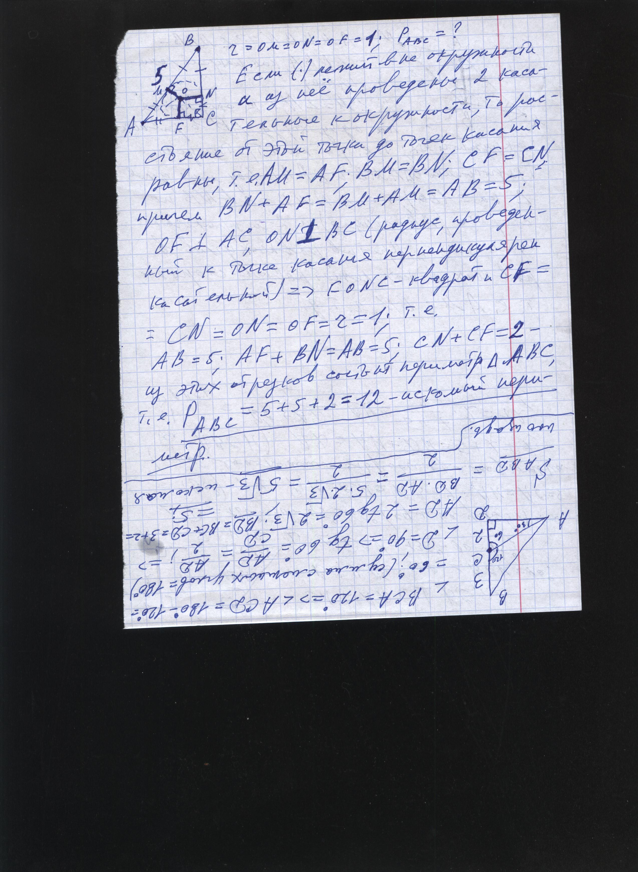 У прямокутний трикутник, гіпотенуза якого дорівнює 5 см, вписано коло, радіус якого дорівнює