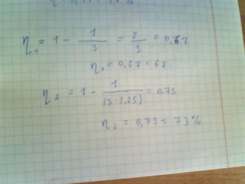 В идеальном тепловом двигателе абсолютная температура нагревателя втрое больше абсолютной температуры холодильника. Каков будет КПД этого двигателя, если, не меняя температуры холодильника, повысить температуру нагревателя на 25%?