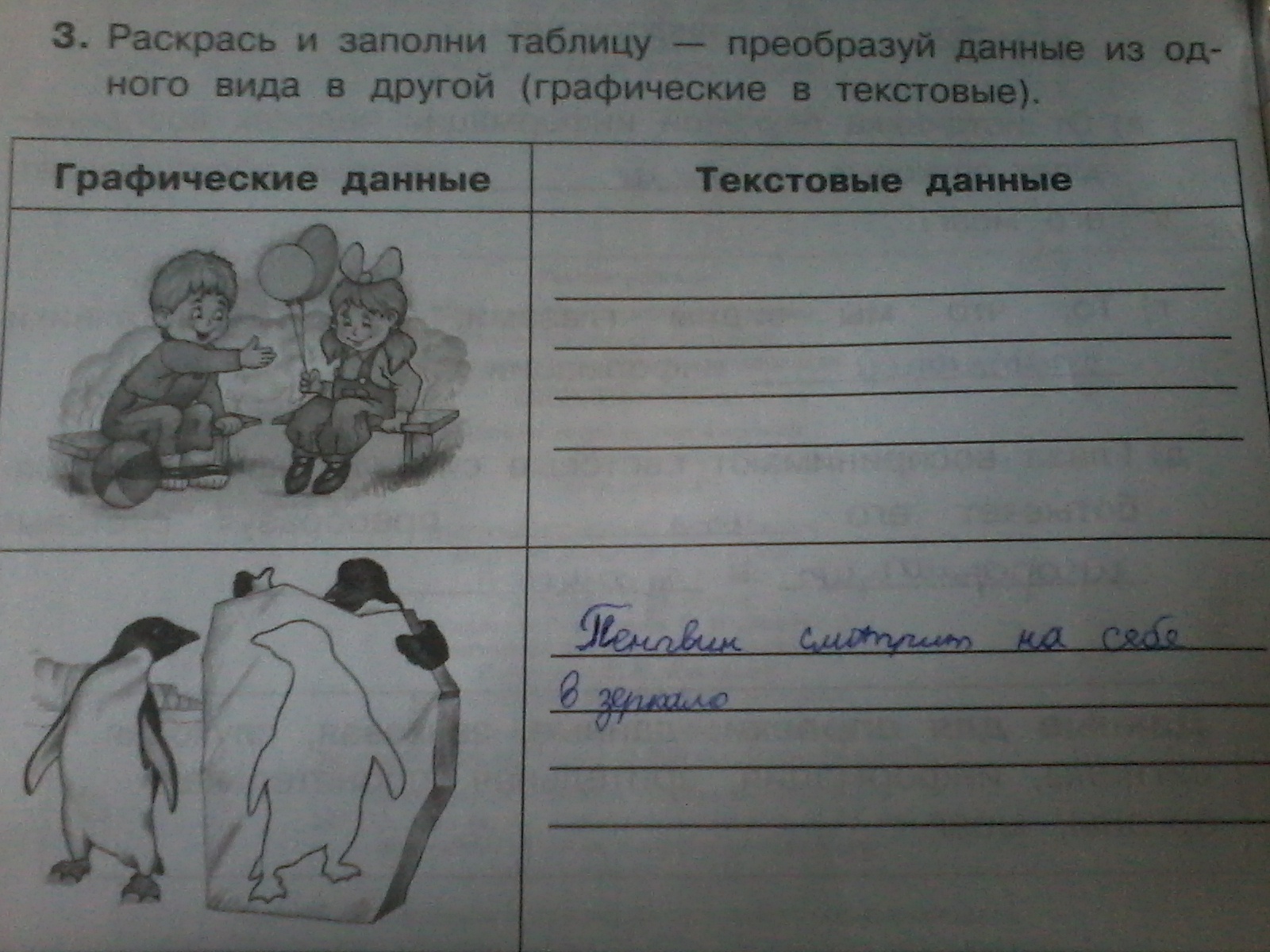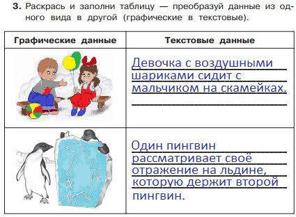 Раскрась и заполни таблицу - преобразуй данные из одного вида в другой (графические и текстовые)