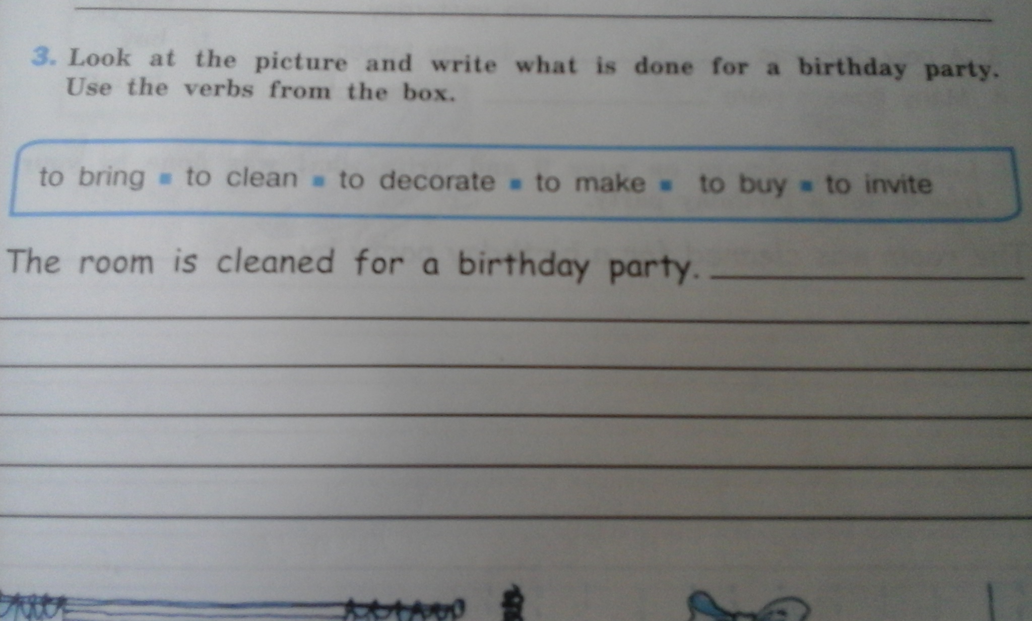 The room is decorated for a birthday party.