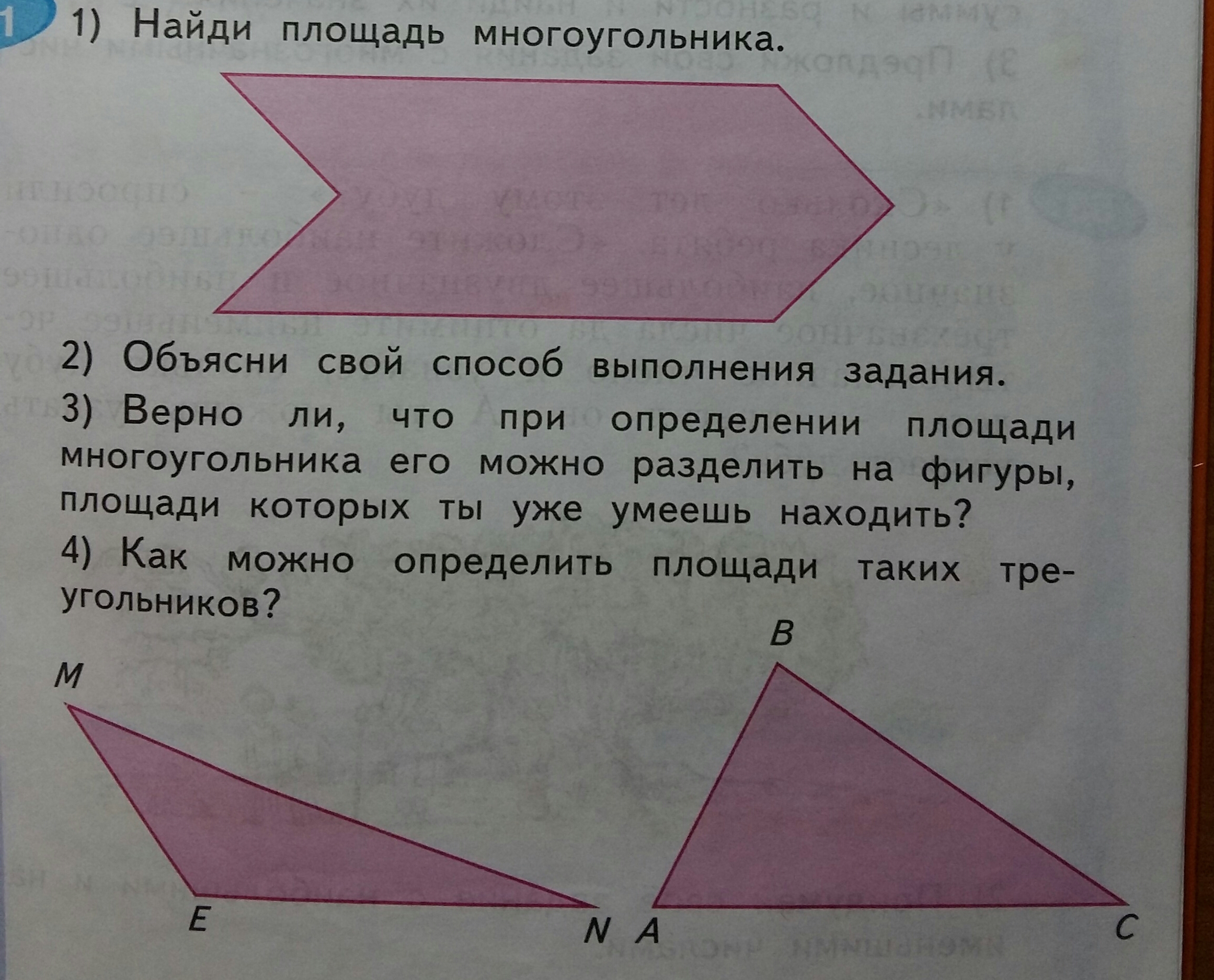 убери углы с лева и перенеси на правую сторону фигуры, получаешь прямоугольник, измеряешь его стороны и всё. Как то так.