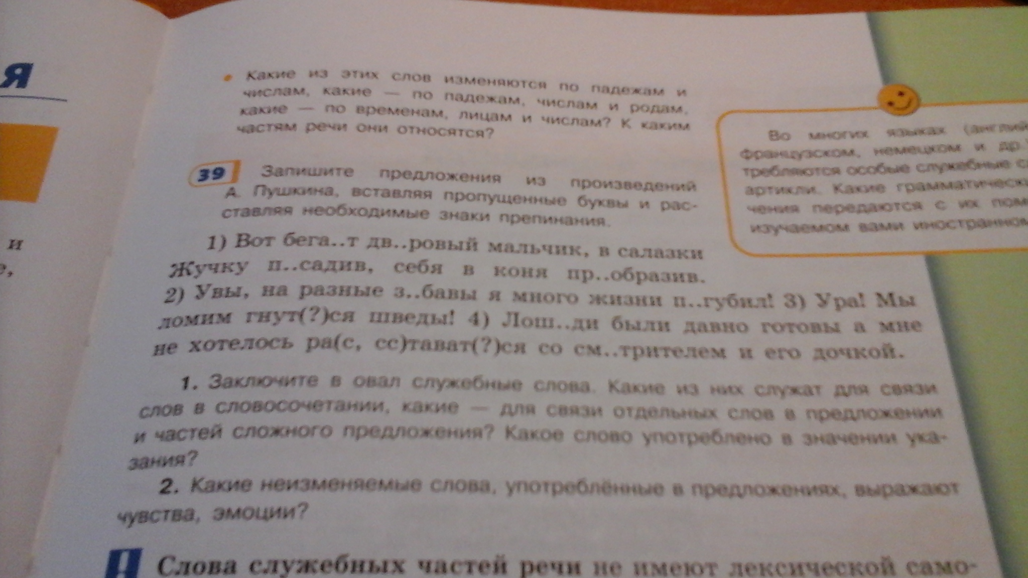 2) Увы, на разные забавы я много жизни погубил! 3) Ура! Мы ломим гнуться шведы. 4) Лошади были давно готовы, а мне не хотелось расставаться со смотрителем и его дочкой.