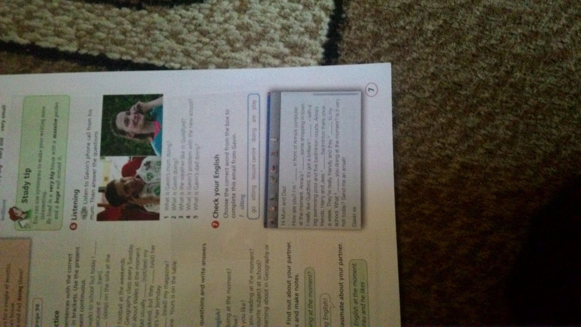 1. Sitting, 2. Doing, 3. Leisure centre, 4. Play, 5. Go. 6. Are