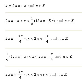 В)Sinx=t, Cost<0, п/2+2пn < t<3п/2+2пn,п/2+2пn<Sinx<3п/2+2пn, т.к. |Sinx|<1, то неравенство не имеет решений.