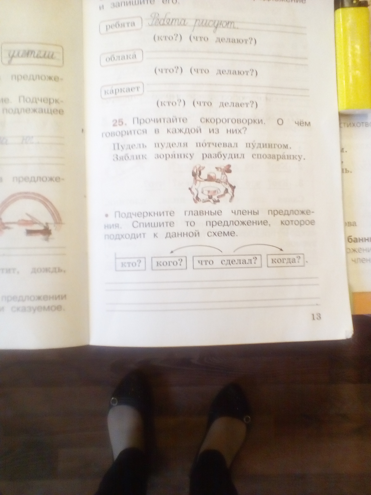 Прочитайте скороговорки .о чем говорится в каждой из них ?пудель пуделя потчевал пудингом. зяблик зарянку разбудил спозаранку. подчеркните главные члены предложения Спишите то предложения которые подходят к данным схемам