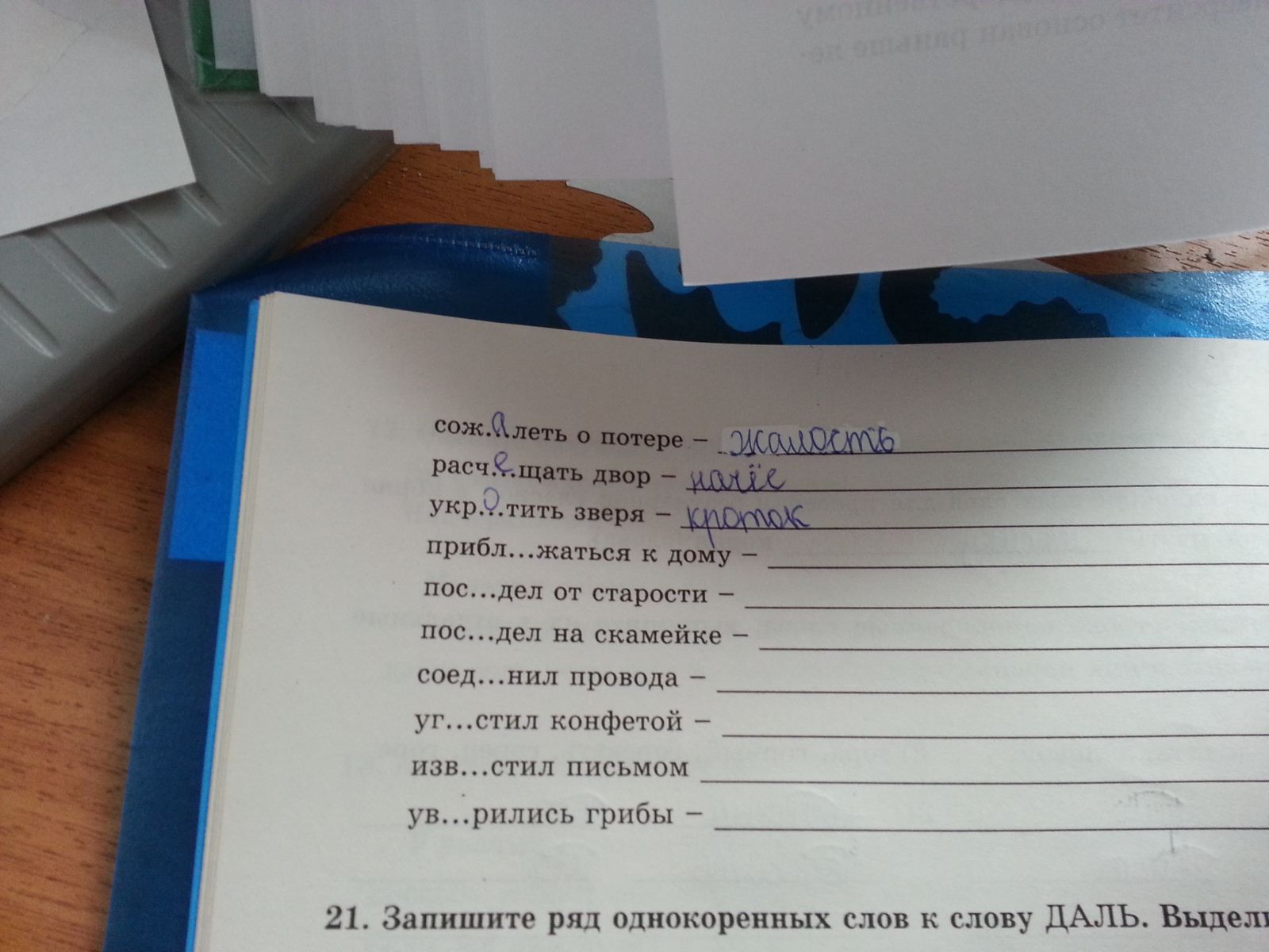 приближаться-близость, поседел не знаю,посидел-сидя.соединил-един. угостил-гость? а дальше не понял