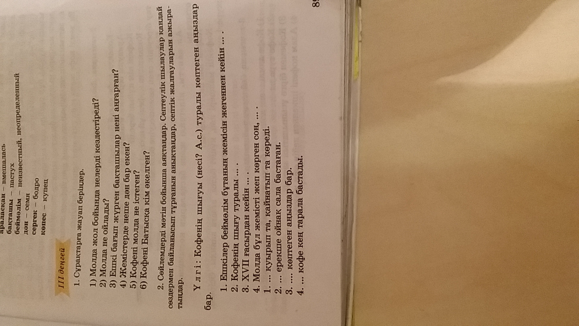 Помогите с казахский языком. Нужно вставить слова в предложения. Вот фото. Третий денгей