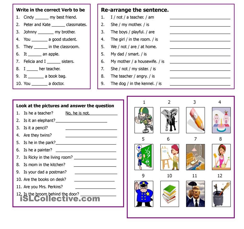 2) I am not a teacher. She is my brother. The boys are playful. The girl is inthe room. We are not at home. My dad is smart. My mother is a housewife. She is not my sister. The teacher is angry. The dog is in the kennel.