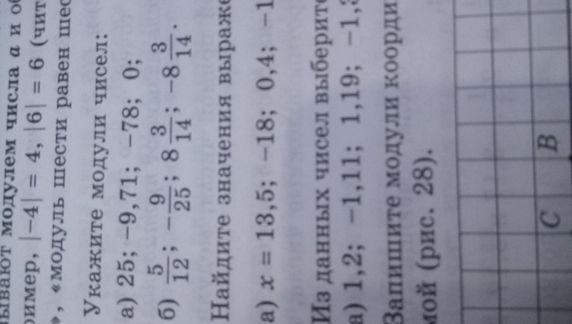 |25|=25 |-9,71|=9,71 |-78|=78 |0|=0 |5/12|=5/12 |-9/25|=9/25 |8 3/14|=8 3/14 |-8 3/14|=8 3/14