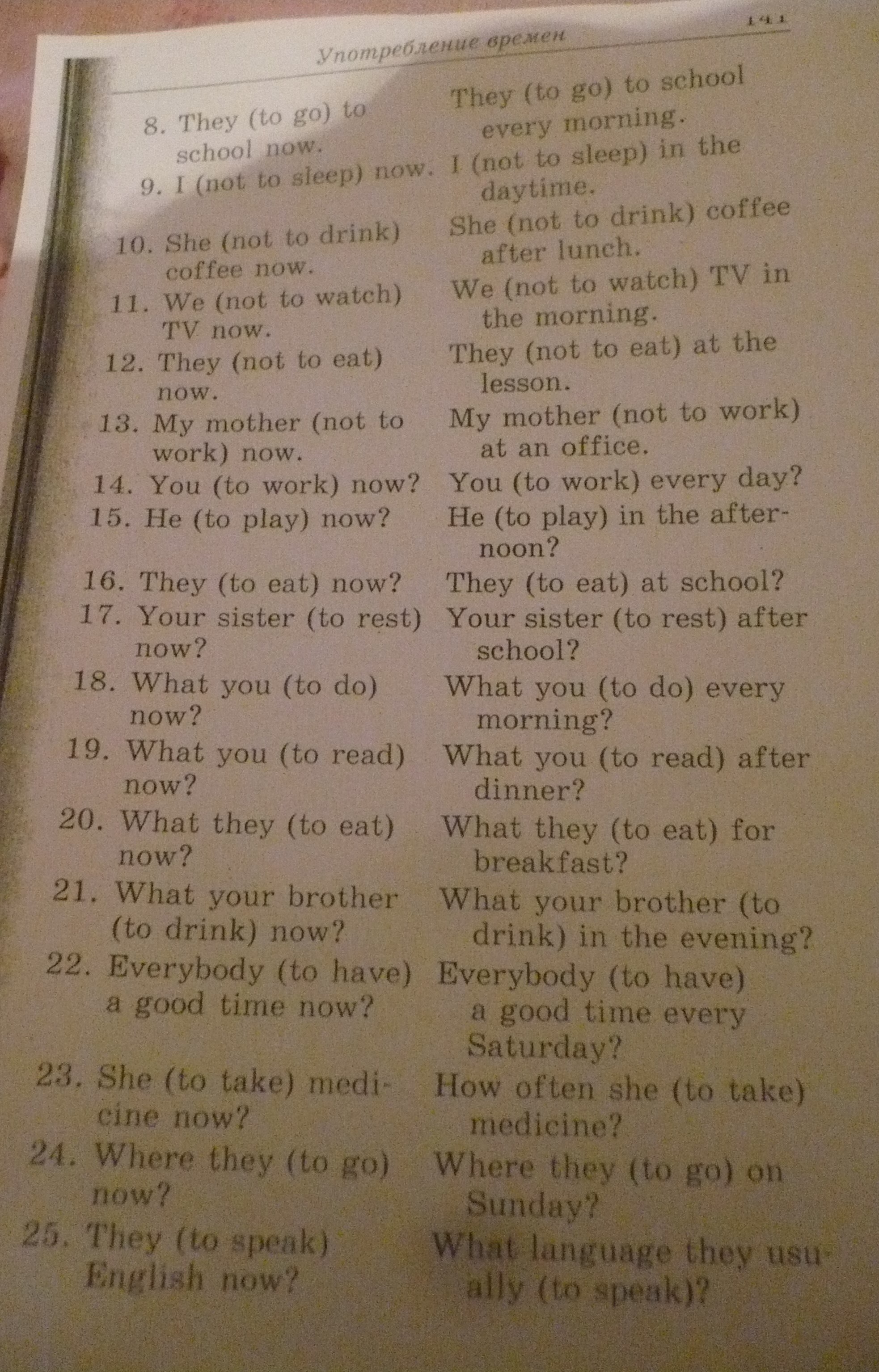 21. What is your brother drinking now? What does your brother drink in the evening?