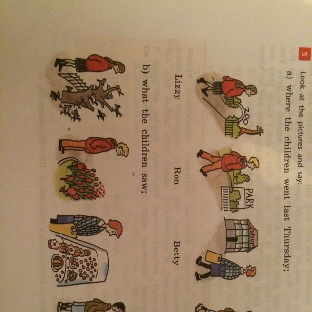 The girl see a tree and a lot of birds. A boy see a lot of flowers. A woman see a lot of cakes.