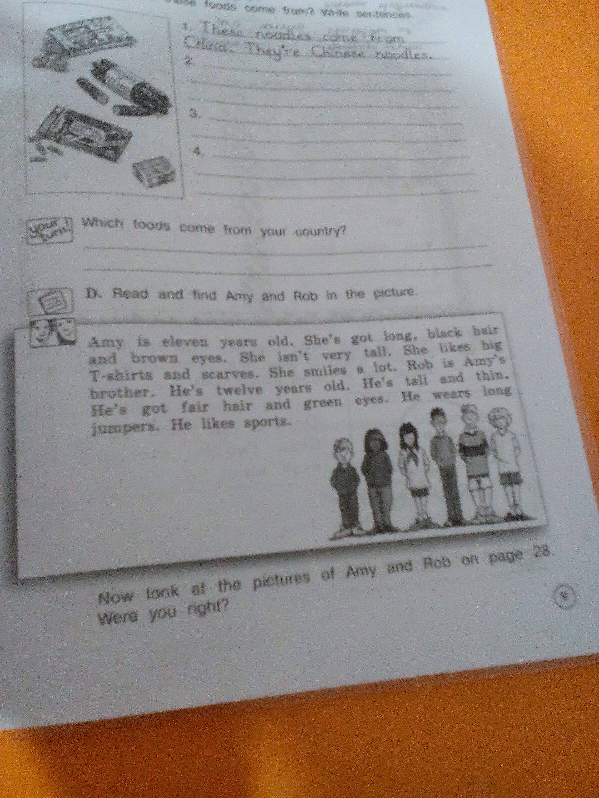 Ами 11 лет. У неё длинные, чёрные волосы и коричневые брови. Она не очень высокая.Она любит длинные футболки и шарфы.Она улыбчивая. Роб- брат Ами. Ему 12 лет.Он высокий и худой. У него светлые волосы и зеленые глаза.Он носит длинные джемпера. Он любит спорт.